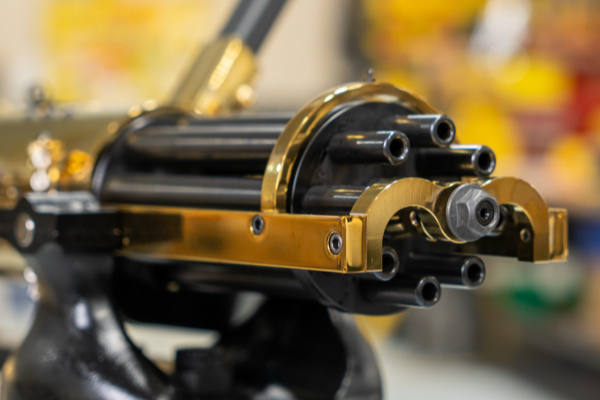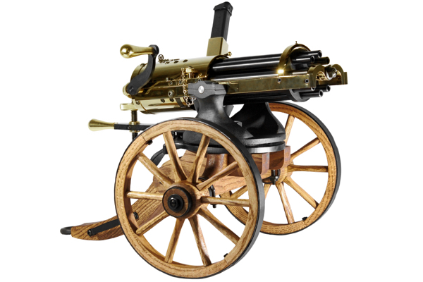 gold-plated brass, this Gatling Gun makes for a striking centerpiece that elevates any collection.